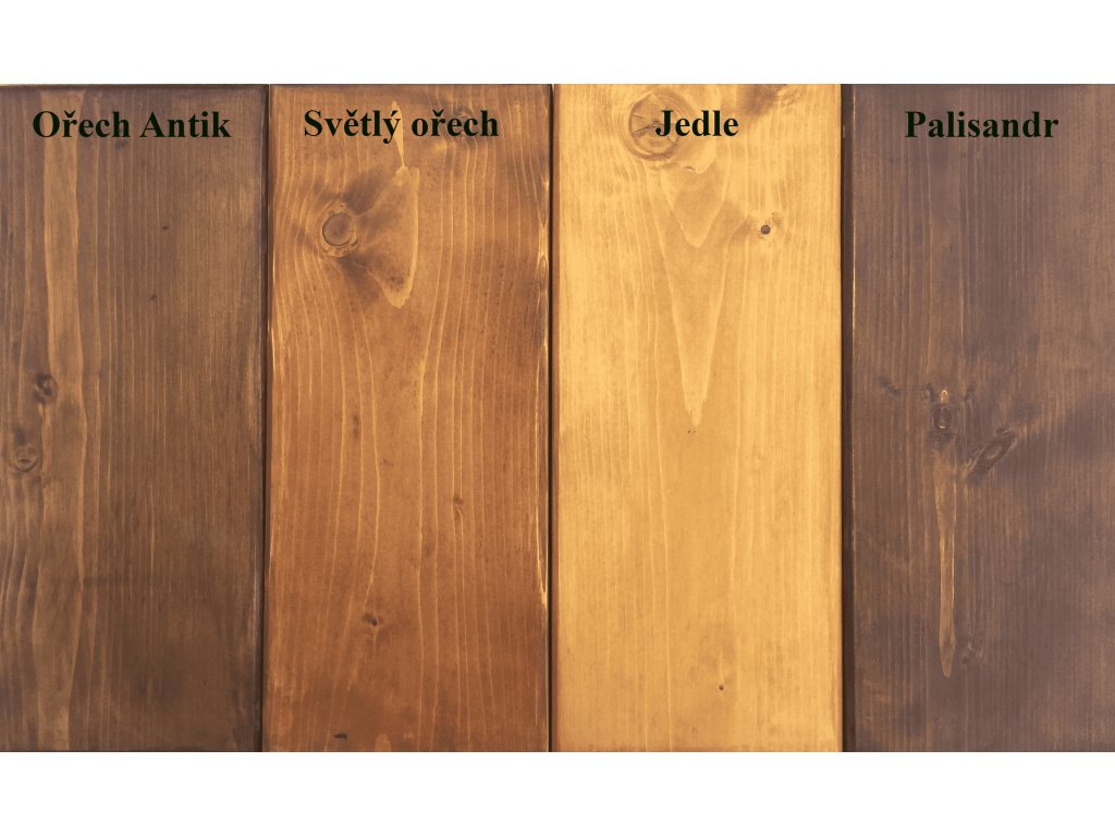 Povrchovou úpravu dřeva provádím vysoce kvalitní tenkovrstvou lazurou italského výrobce, která na povrchu zanechává přirozenou strukturu dřeva, zároveň poskytuje vysokou ochranu dřeva před povětrnostními vlivy. Výdřevy nabízím buď barevně neošetřené, případně v základní barvě Ořech Antik, či Světlý Ořech, Palisandr nebo Jedle. Po domluvě není problém povrch dřeva ošetřit jakoukoli jinou barvou.